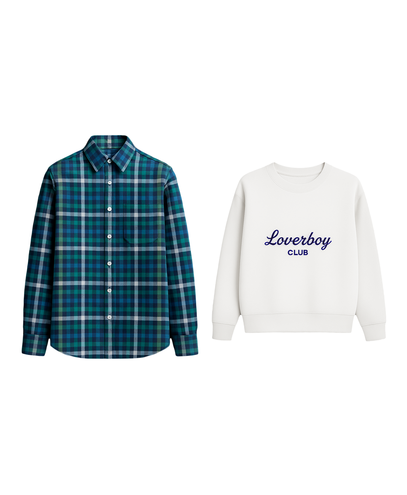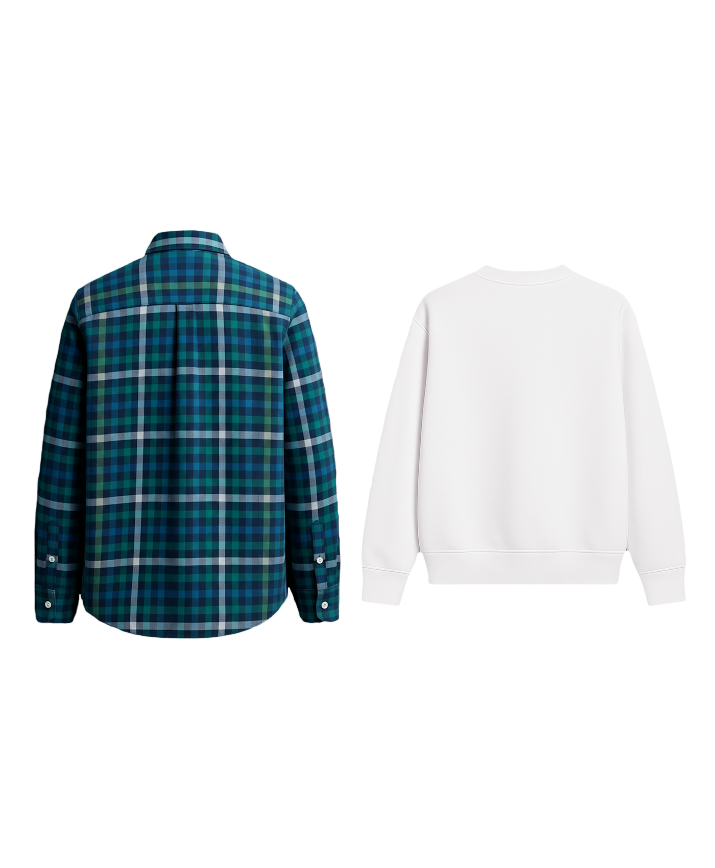 Моделът включва карирана риза, позиционирана под блузата, която допълва дизайна и придава характерен стилен акцент. Ризата не е зашита към блузата и двата артикула могат да се носят поотделно, според предпочитанията и визията. Те обаче се предлагат единствено в комплект и не се продават поотделно.