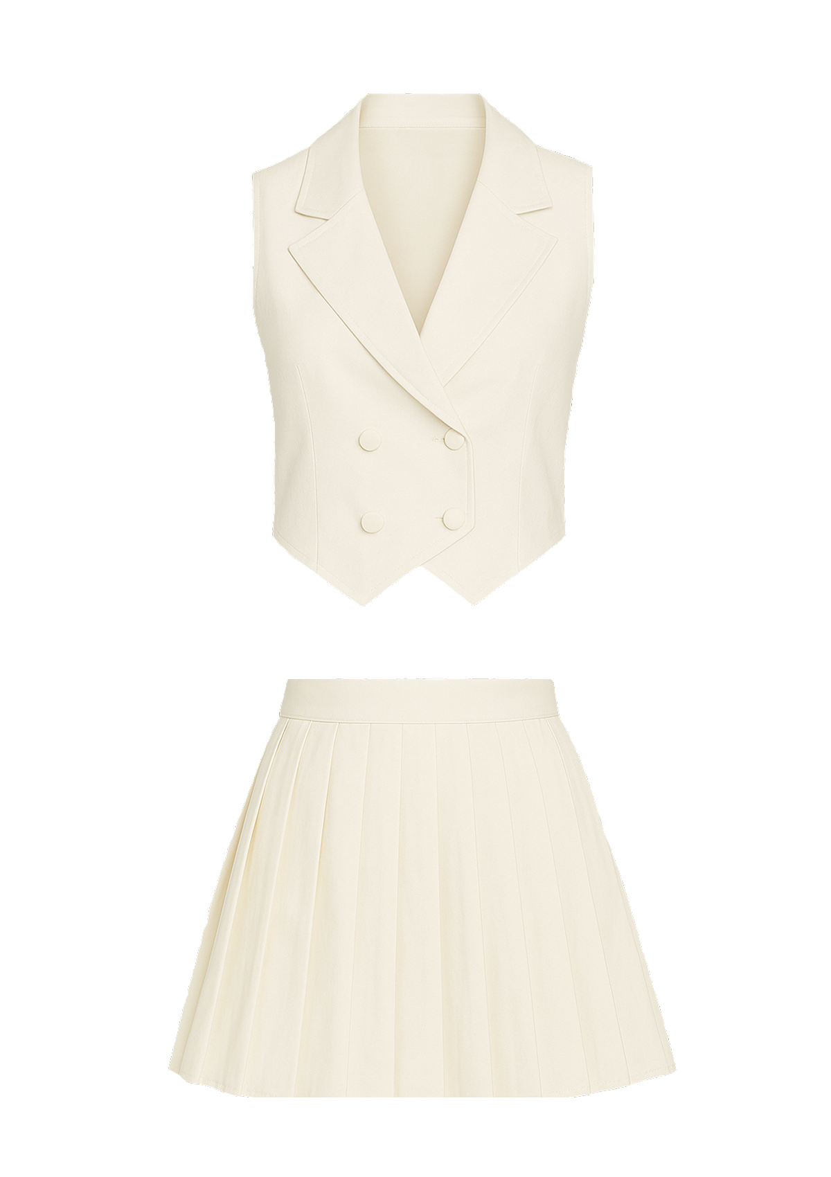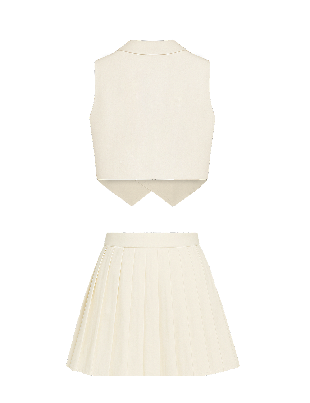 Изработен от мека и дишаща бамбукова материя, комплектът включва елегантен елек и плисирана мини пола. Естествените бамбукови влакна предлагат копринено гладко усещане, отлична въздухопропускливост и екологичен комфорт – идеални за топлите дни.